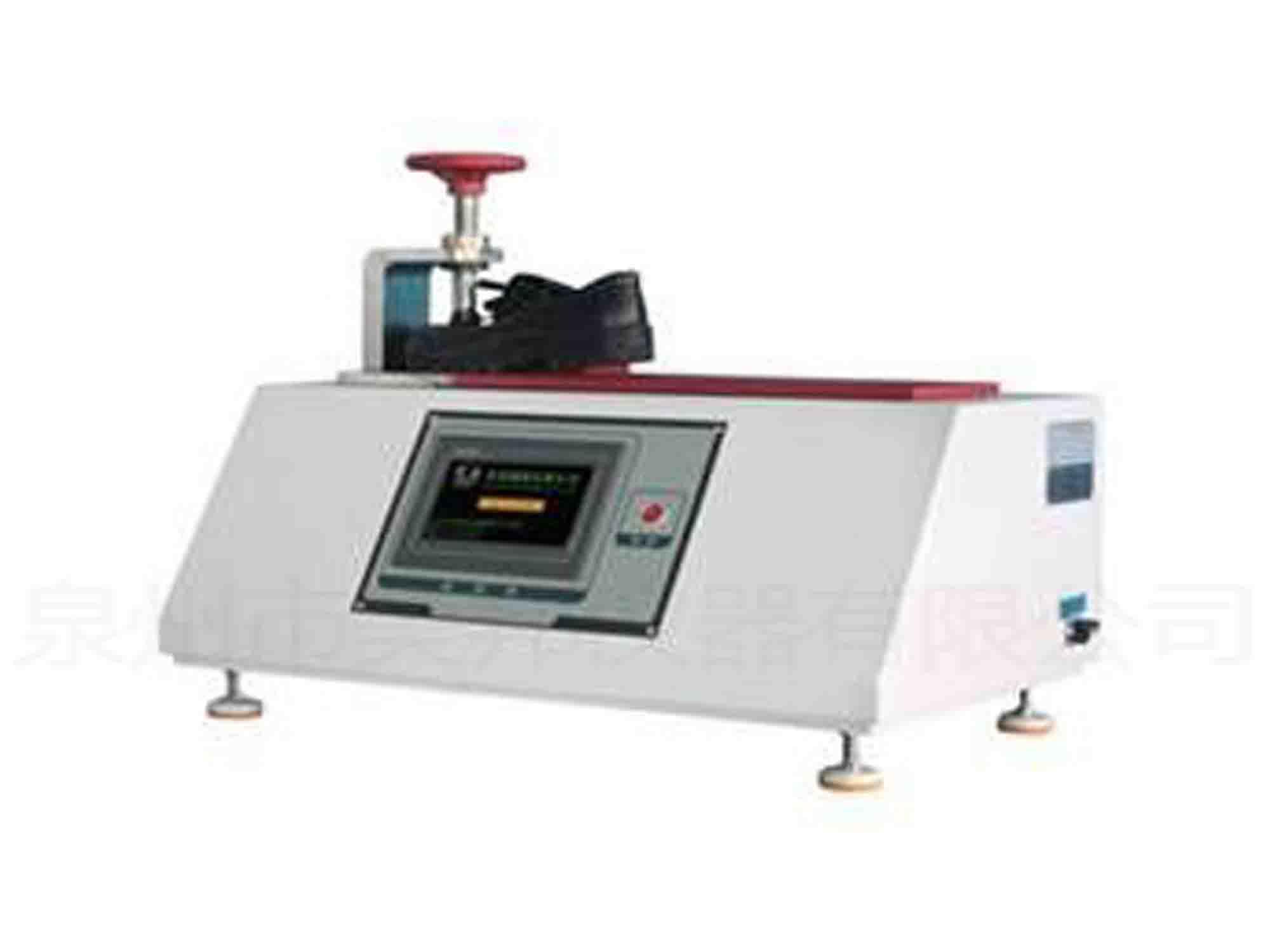 本機用于成品鞋之抗彎折性能測試。通過檢驗檔試樣鞋曲折到一定角度時所需力值或到達一定力時的角度,評定試樣鞋材之抗彎折性能。采用高精度譯碼器準確讀出角度值,具有快速回位功能。