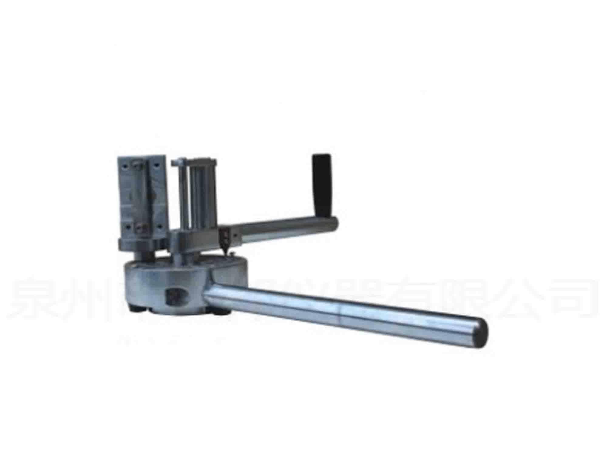 本機(jī)主要用于測試鋼勾心的抗彎曲性能,將勾心插入夾具中使其繞直徑為∮10mm的中間立柱旋轉(zhuǎn)180°,目測表面小裂紋狀況及是否斷裂,判定其質(zhì)量。