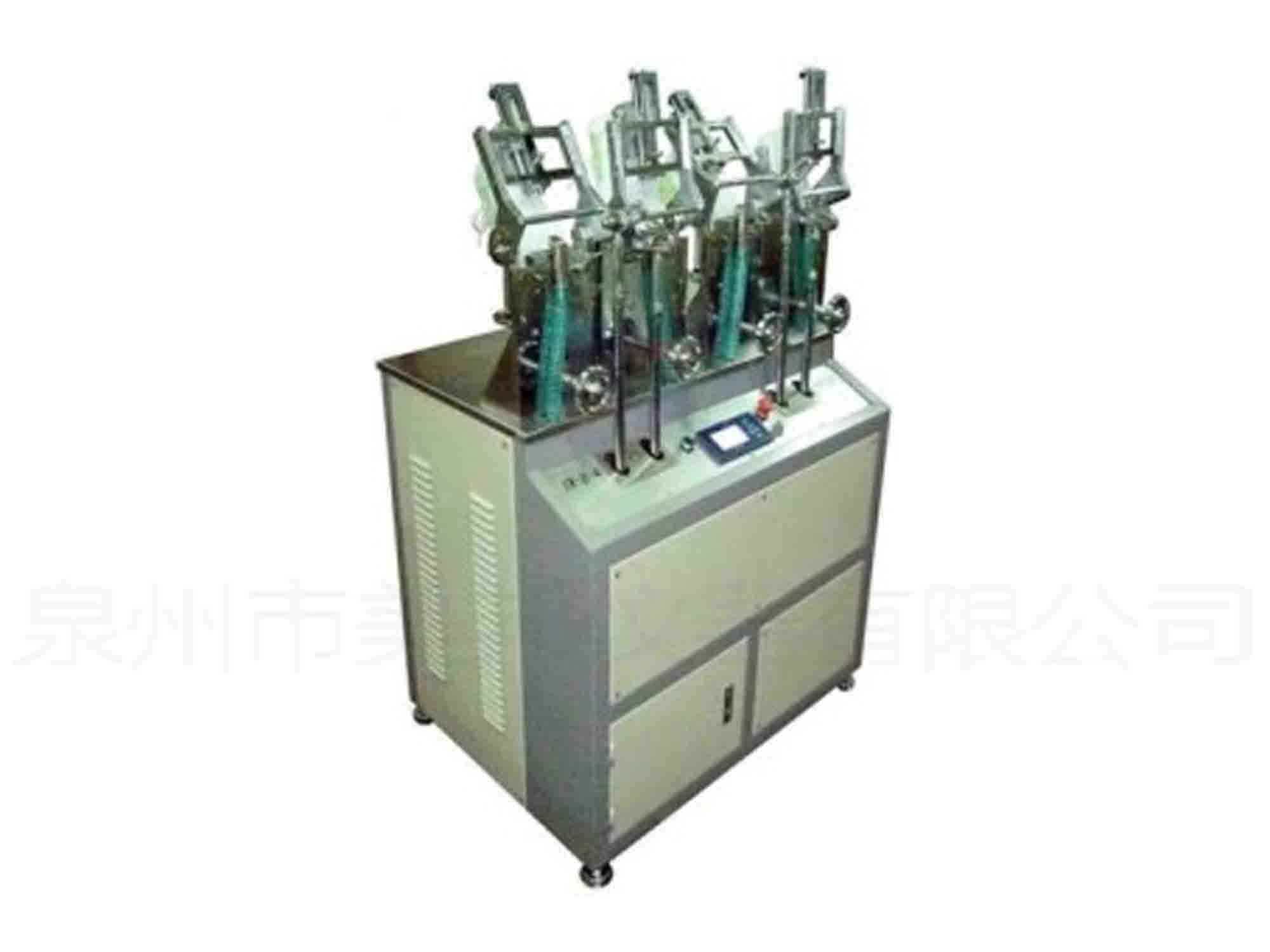 本機系利用來測試成鞋和鞋底(片)在常溫下的耐折性能。將成鞋或鞋底以一定角度及一定頻率進行一定次數(shù)的曲撓試驗,并觀察鞋幫的變化,可同時測4只鞋。