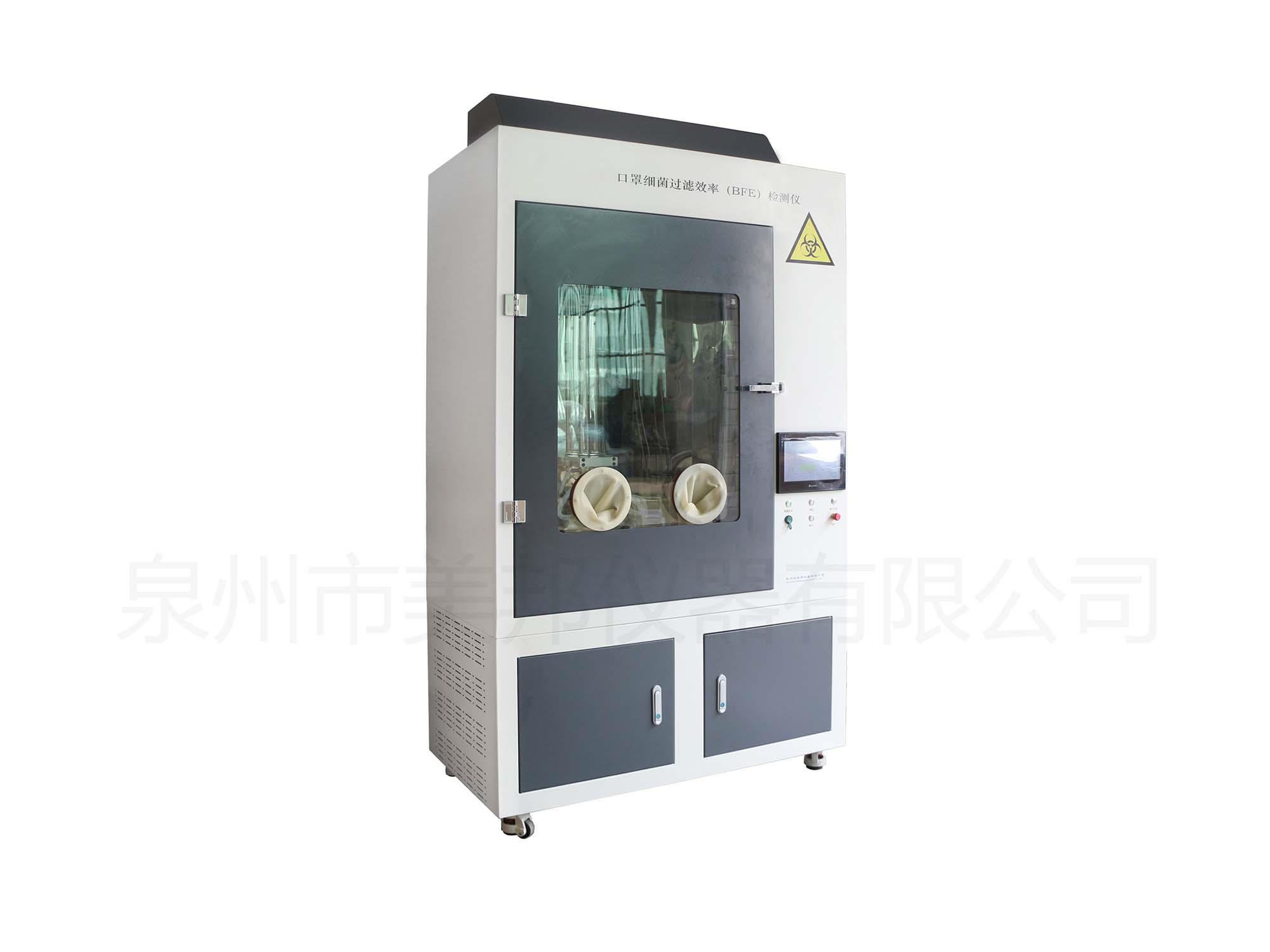 口罩細(xì)菌過濾效率(BFE)檢測(cè)儀主要適用于計(jì)量檢定部門,科研院所,醫(yī)用口罩生產(chǎn)單位及其相關(guān)檢測(cè)部門的對(duì)于口罩細(xì)菌過濾效率性能的測(cè)試。由氣溶膠發(fā)生系統(tǒng)、氣霧室與氣溶膠傳輸裝置、負(fù)壓柜、28.3L/min 采樣器等構(gòu)成,整個(gè)檢測(cè)儀由控制臺(tái)進(jìn)行統(tǒng)一控制。控制臺(tái)采用微機(jī)控制系統(tǒng)協(xié)調(diào)控制氣溶膠發(fā)生系統(tǒng)、傳輸系統(tǒng)、負(fù)壓柜、采樣系統(tǒng)的工作,并將工作狀態(tài)進(jìn)行實(shí)時(shí)顯示,整個(gè)測(cè)量工作自動(dòng)完成。
